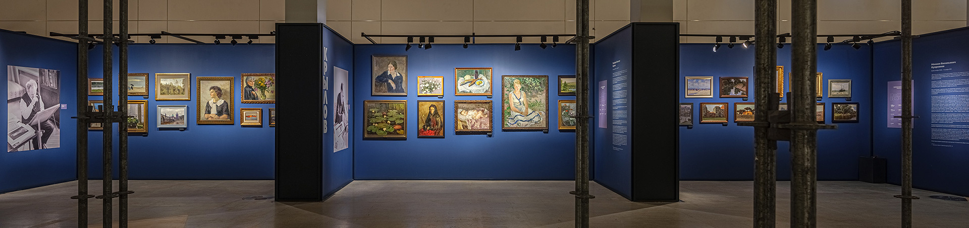 To create an interior solution for the exhibition space, I turned to the story of the acquaintance of three artists. This happened in the early 20s, at the main creative institute of the country, the VKHUTEMAS school of the avant-garde. There, the artists began working together, under the pseudonym "Kukryniksy".